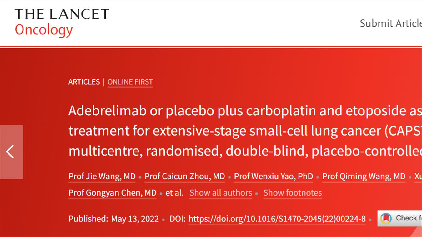 凯时官网卡瑞利珠单抗联合阿帕替尼最新研究成果荣登《柳叶刀·肿瘤》